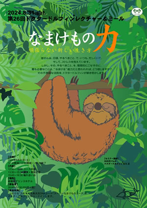 なまけもの力という事で、先生はナマケモノのぬいぐるみと共に登場されたのですが、先生がナマケモノのぬいぐるみと戯れながらのパフォーマンスが面白くて、さすが先生だと思いました。