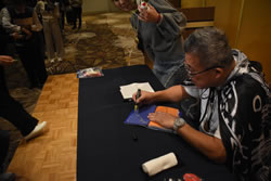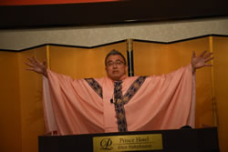 先生は、再入場毎に衣装を替えられ、その度に会場の空気も一変し、音楽とともに参加者を楽しませていただきました。次回も楽しみにしていますので、よろしくお願いいたします。 |