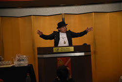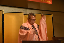 先生は、再入場毎に衣装を替えられ、その度に会場の空気も一変し、音楽とともに参加者を楽しませていただきました。次回も楽しみにしていますので、よろしくお願いいたします。 |